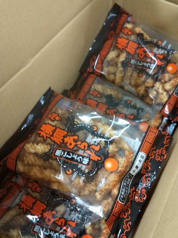 これ塩味やカレー味は、このあたりのお店でたまに見るのですが、黒こしょう味は見かけないので箱での大人買い