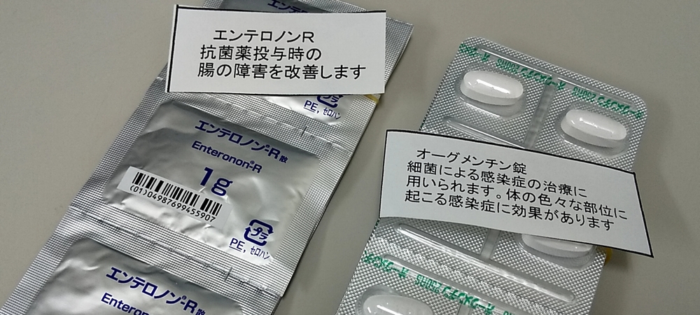 会計と処方薬のご説明、複合抗生物質製剤は1日4回
