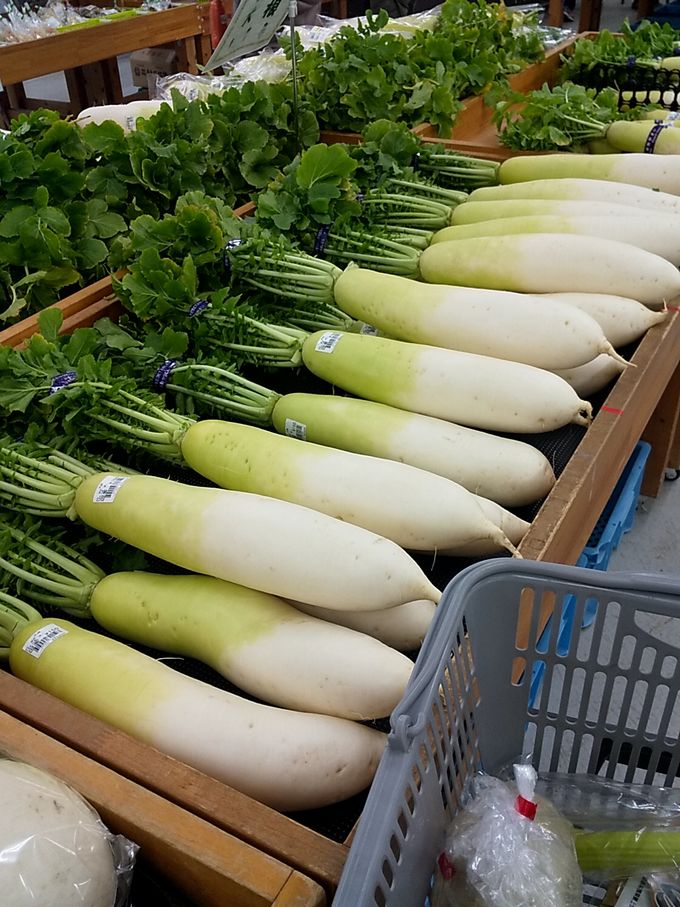 祝日のこの日の午前中、お馬鹿娘のガキンチョと、ハーベストの丘にあるJA堺さんの直売所にお出かけした折、見かけた大根