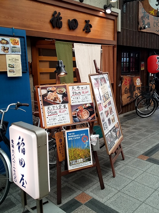 こうして本日のメニューは、ランチは揚げ物一本商店街の稲田屋さんの天丼狙い