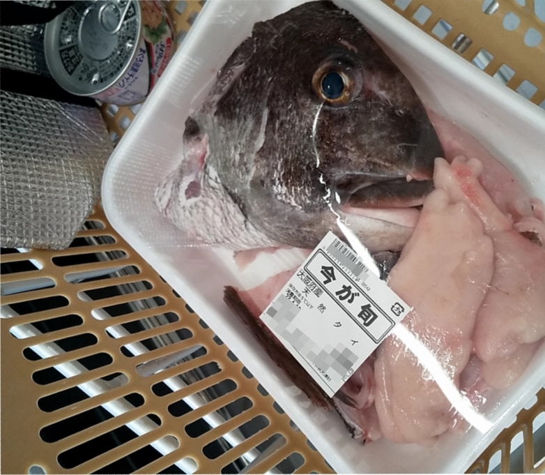 この日もお目目の澄んだ大きな天然鯛の兜がありまして、これで鯛のあら炊きを肴に冷酒の絵が浮かびます