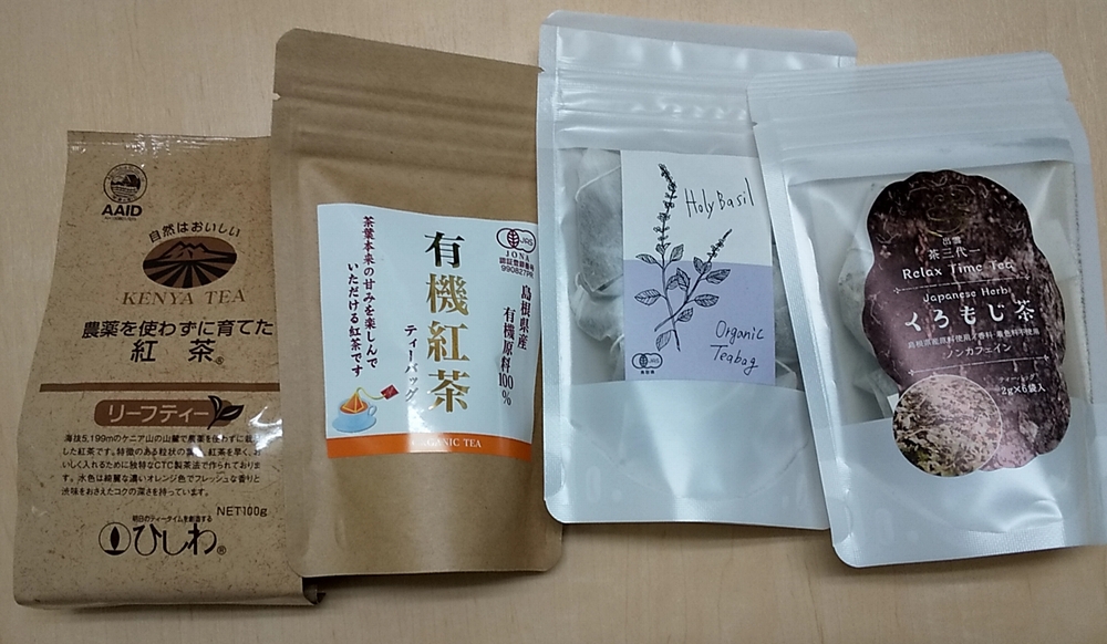いつも美味しいバゲットおみやに頂いておりますので、健康志向のその方にお返し用の近くで人気のナチュラルショップの、無添加無農薬の紅茶やハーブティーをチョイス