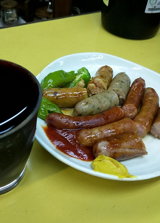 ボリューム的に一人では危険、隣のダンディー先輩とシェアしていただいたのですが、ここでせっかくの高級ソーセージ