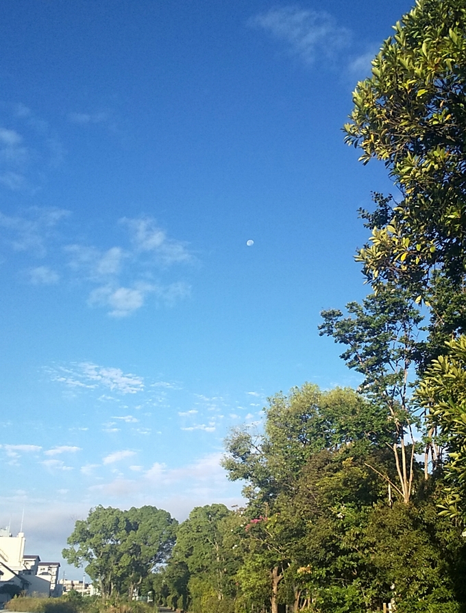 6時前でもすっかり日が出て明るい空にはお月さんが結構明るく見えてます