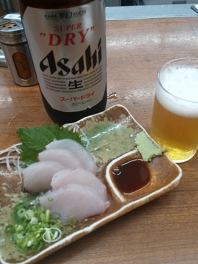人気のお店は既に多くのお客様で賑わったおりましたが、何とか入れて戴きまずはつめたいビールで今朝の作業の完成