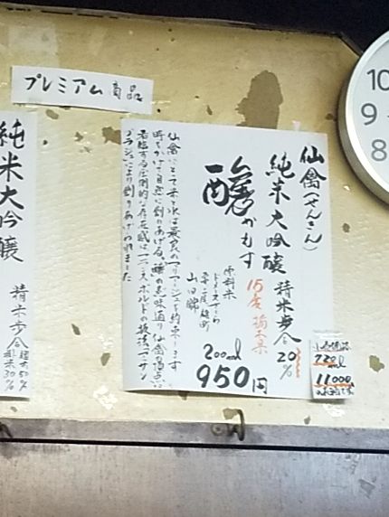 いつも通り最初の生を飲みながら今週のプレミアチラシに見慣れないお酒の名前は純米大吟醸 仙禽醸かもす)
