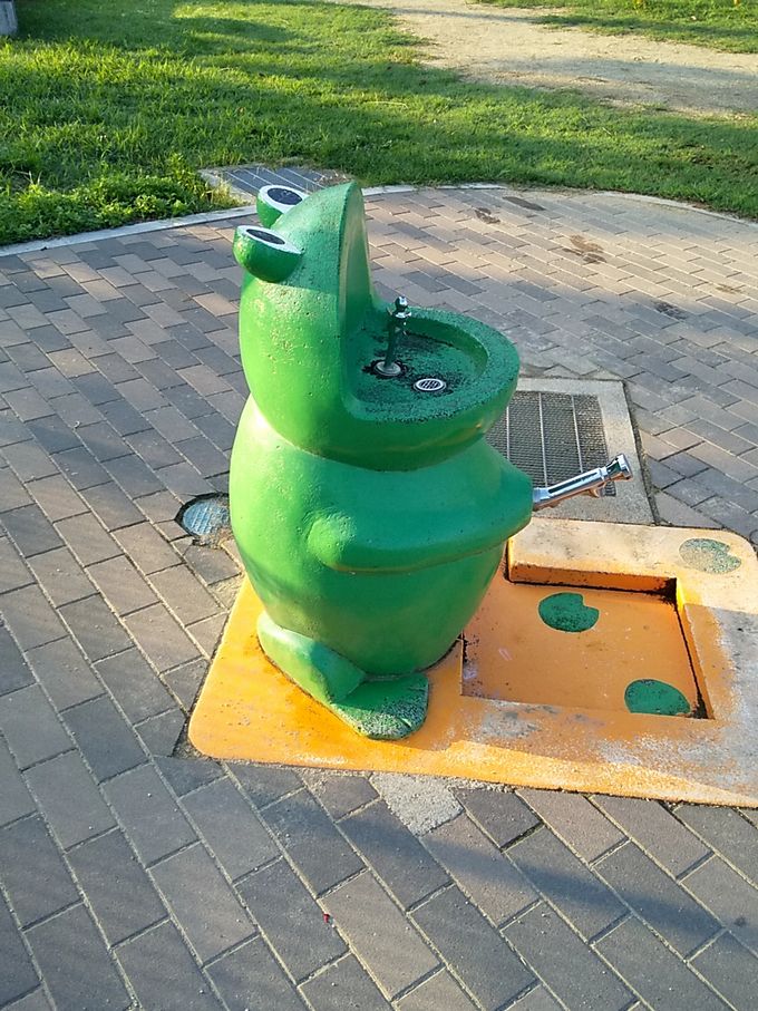 途中公園の水場はちょこっとほほえましい風景はカエルさん
