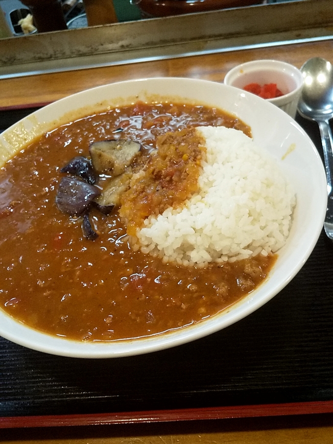 私はキーマカレーに揚げ茄子追加