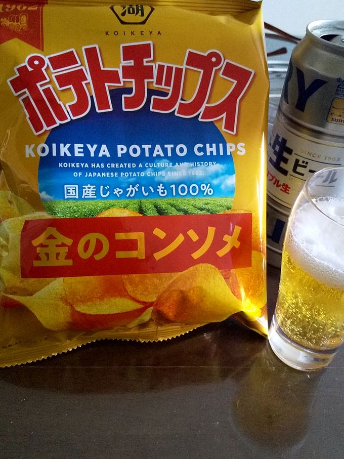 手ぶらで入店した私はどうせ袋が必要になりますので、ついでですのでここでも追加で買ったロング缶と金んのコンソメ味のポテチは、私の三時のおやつになりました