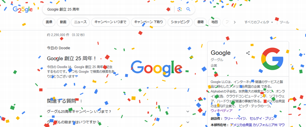 9月27日はGoogleさんの創立25 周年!