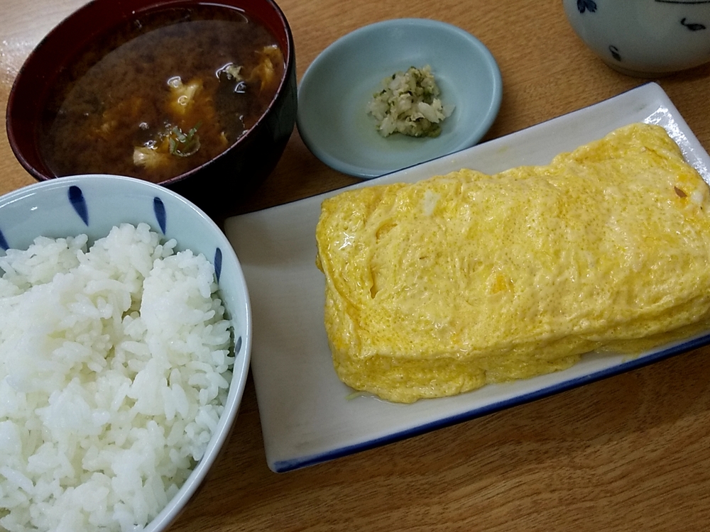 こちらでメインはお店の人気商品出汁巻きと、赤だしに小ご飯