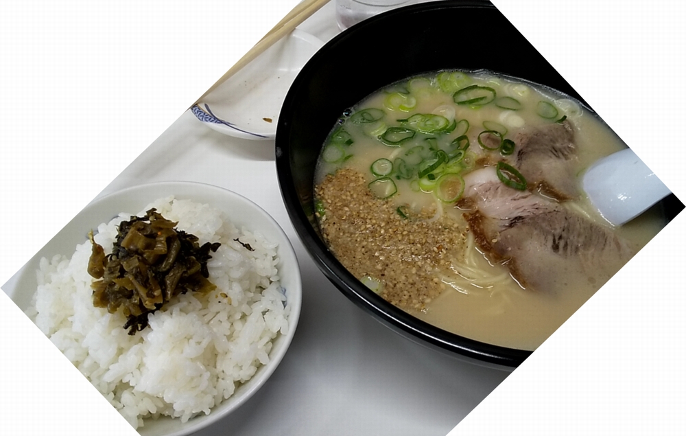 久々の長浜ラーメンランチ、もちろん高菜ご飯のセットは必須です