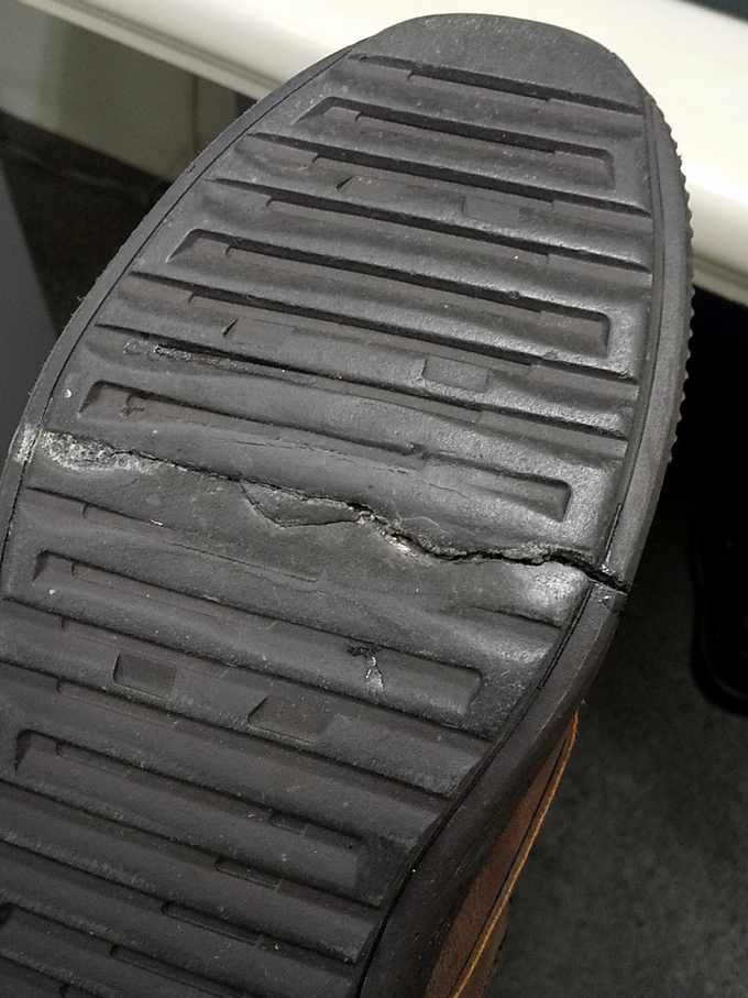 靴の底ゴムにひびが入って履き心地どころか雨降りには、必ず浸水靴下ベタベタの危機的状況