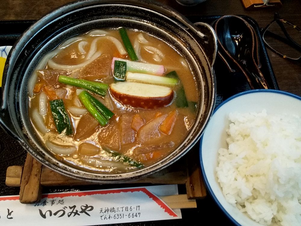具材たっぷりのみそ煮込みうどん暑さに耐えてのホクホク感がたまりません