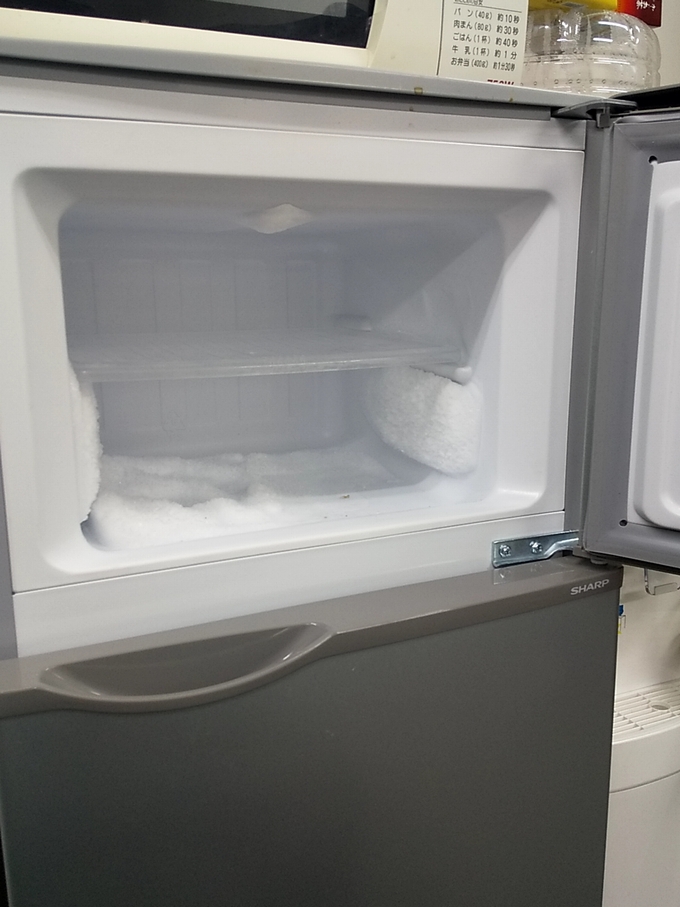 そういえば昼間会社の冷蔵庫、あまりの霜の塊に嫌気がさして、霜取りしました