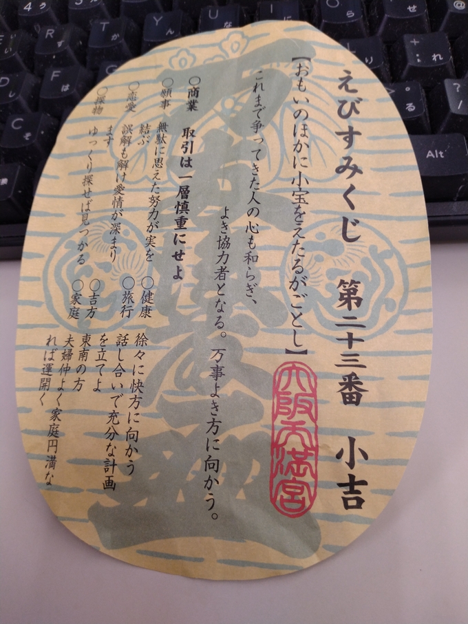 ちなみに昨年は大吉でしたが、今年のえびすみくじは小吉