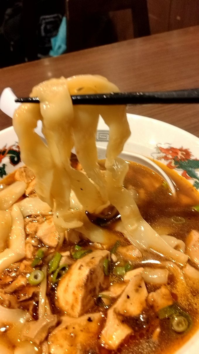 刀削麺は文字通り麺生地を削って作る麺だけに、厚みとしこしこ感が楽しめます