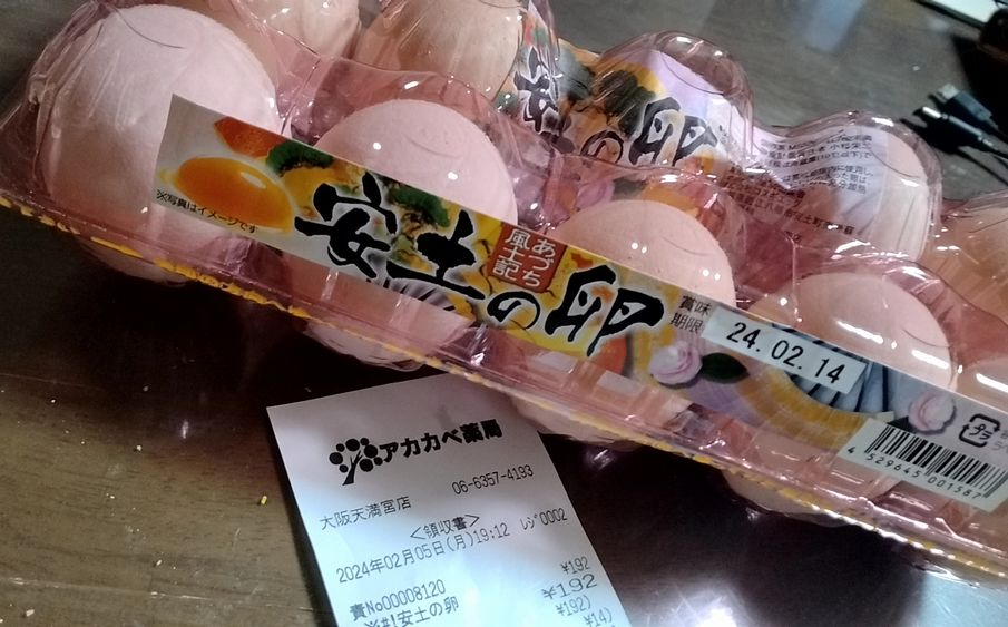 帰り道、商店街のドラッグストアに置いている人気卵のパック「安土の卵」