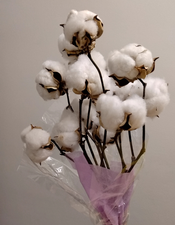 事務所のテーブル周りの飾りにいいかもと、途中で買ったコットンフラワー