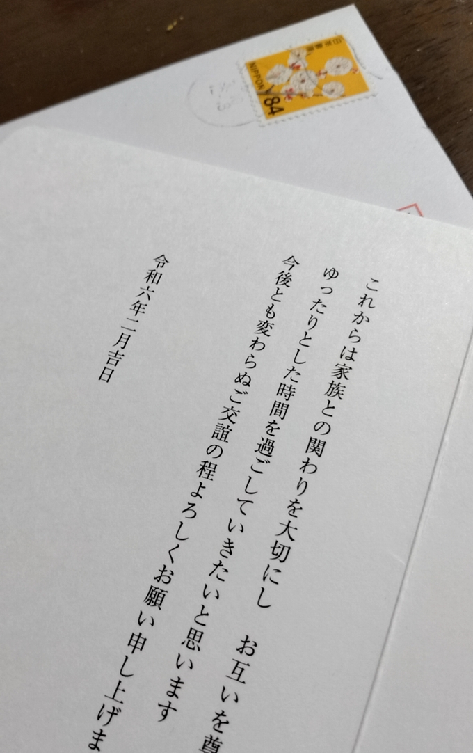 書面は既に知ってましたが、再び読み返して「夫婦二人でこれからの時間を楽しみます」のくだり