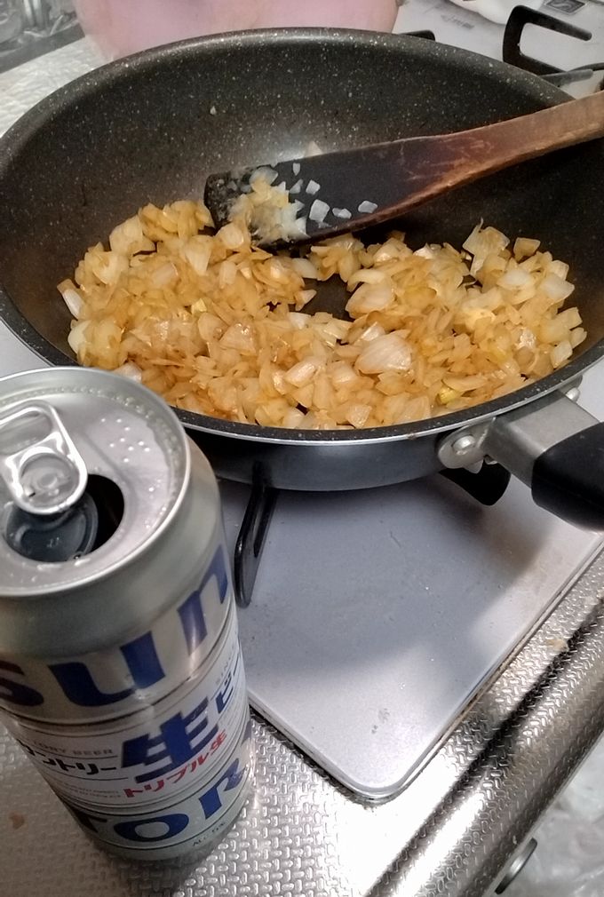 影響受けやすい私は、玉ねぎを狐色にするにはロング缶のお力必要でした