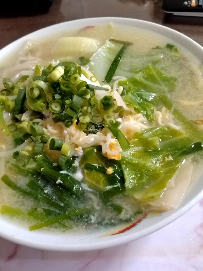 私の好きなエースコックのワンタンメンがありましてので、お約束通りお野菜はキャベツにニラに卵とモヤシさん