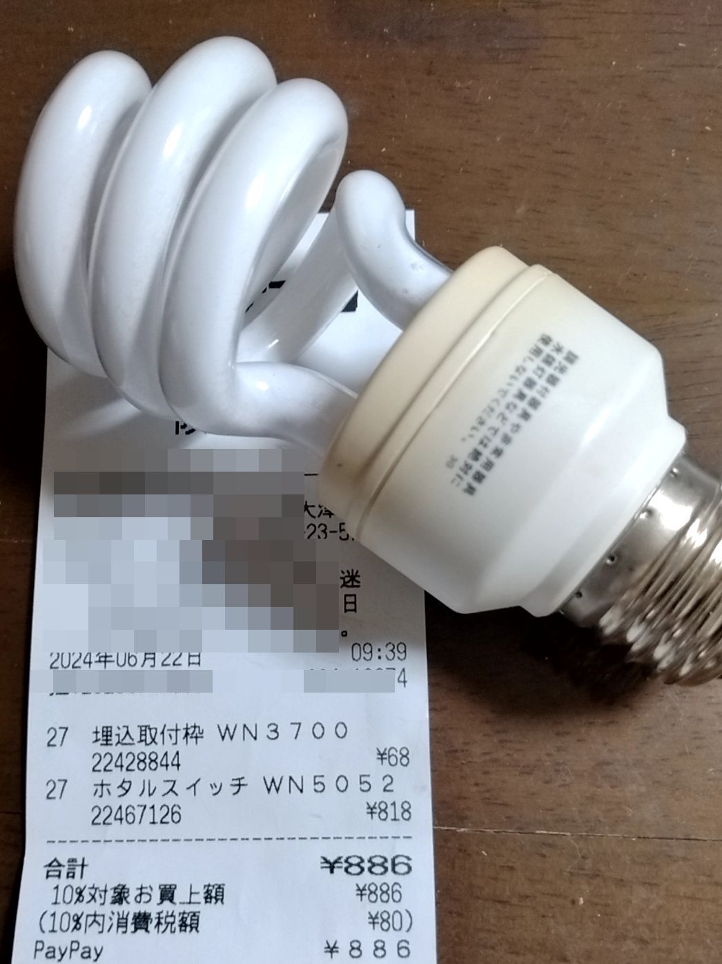 結局スイッチ交換等のお手間かけずに電球交換、朝の散歩でパワースポットへのお賽銭が効いたかも