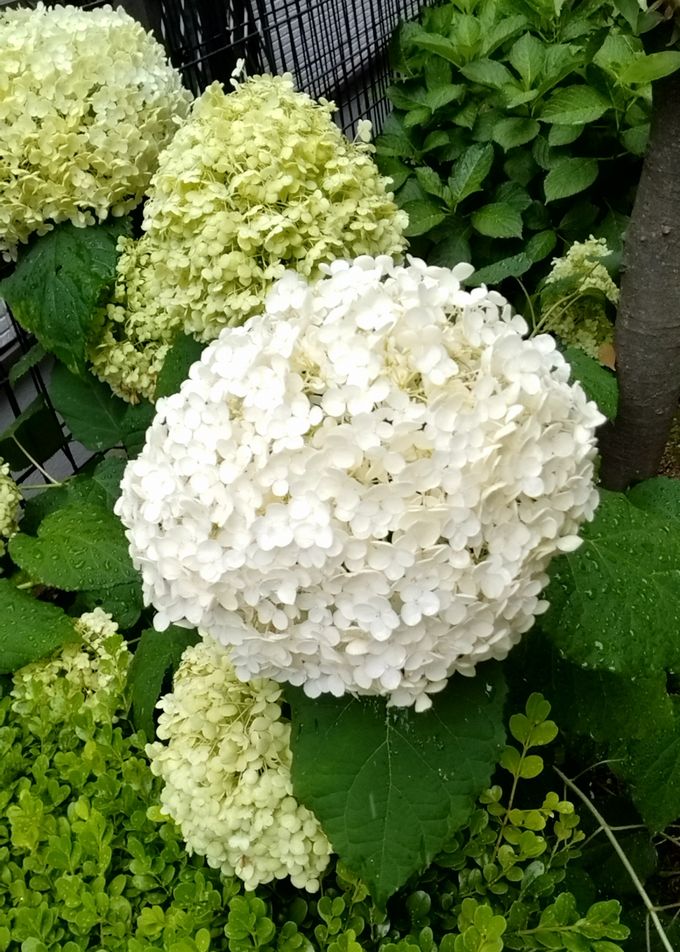 マンションの敷地内の紫陽花も、梅雨が始まつてからが活き活き見えます