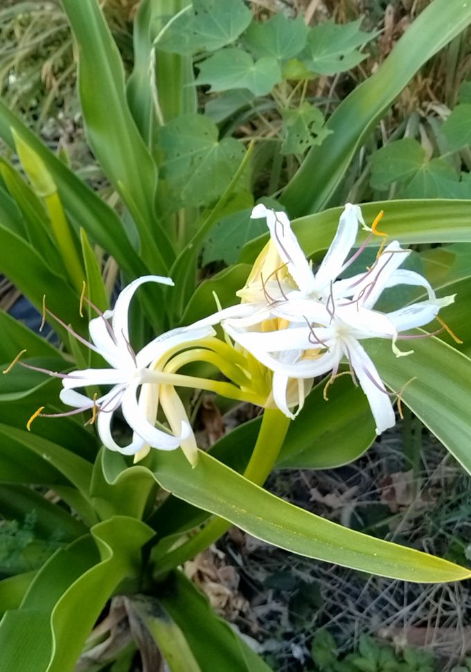 本日のお散歩途中で見かけたハマユウ、夏の日差しの中で涼しそう