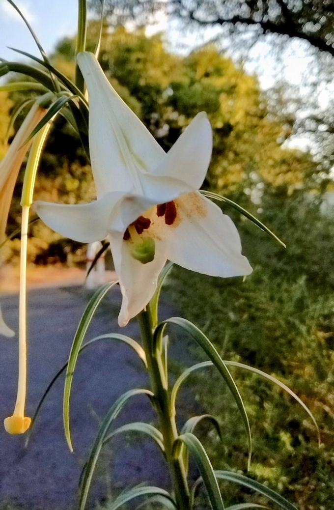この日目にした印象的な、花弁が華やかな百日紅と対照的な清楚な鉄砲ユリ
