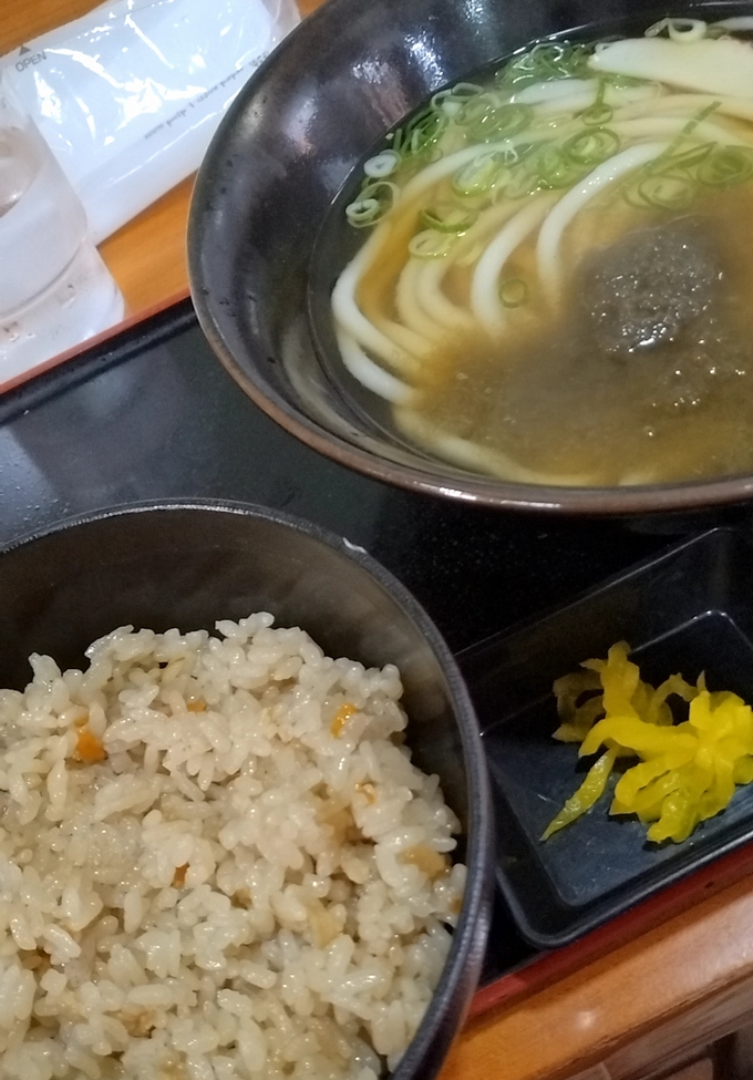 ◆ランチ: かやくご飯 + とろろ昆布のうどん