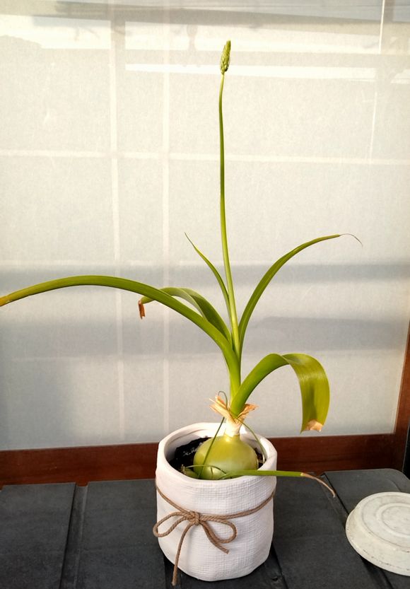 ベランダで2週間前に見つけたオーニソガラム アルプカナタールの花芽