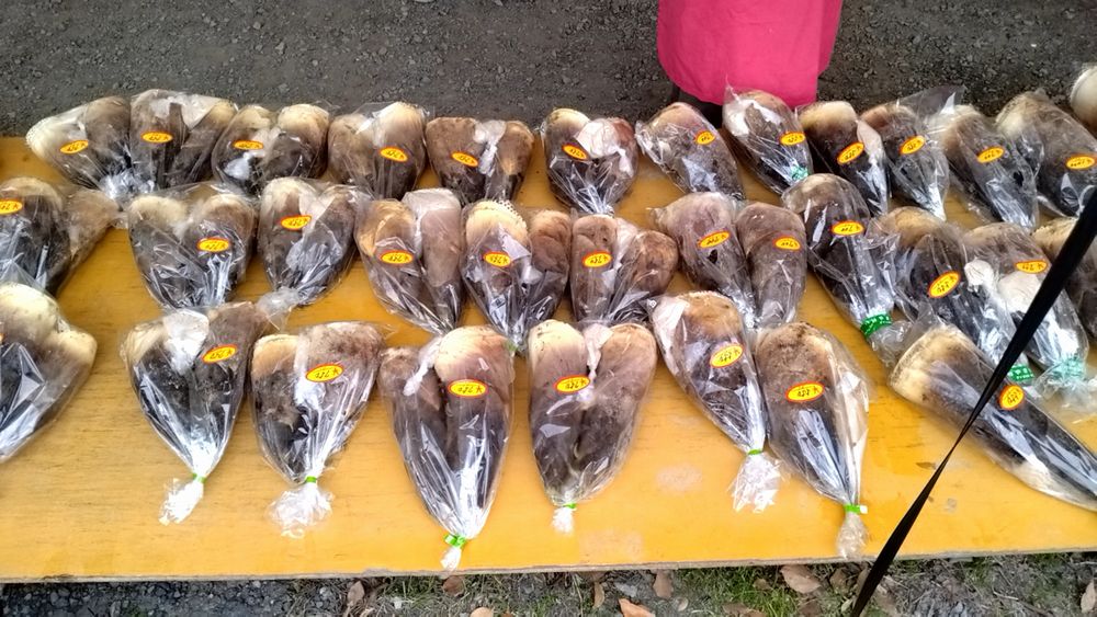 公園の朝市では旬のタケノコさんがずらりと並んでおります