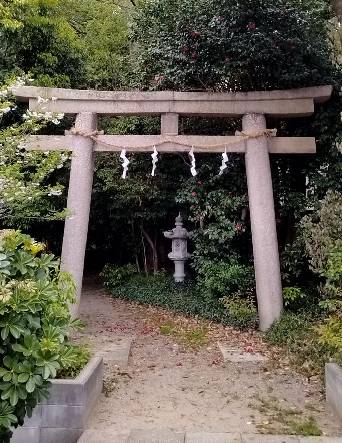 目的の神社にからの帰り道は、うっそうと生い茂った森の中を通って帰るのですが、神社を通り抜けてふと振り返ると、なかなか風情のある風景