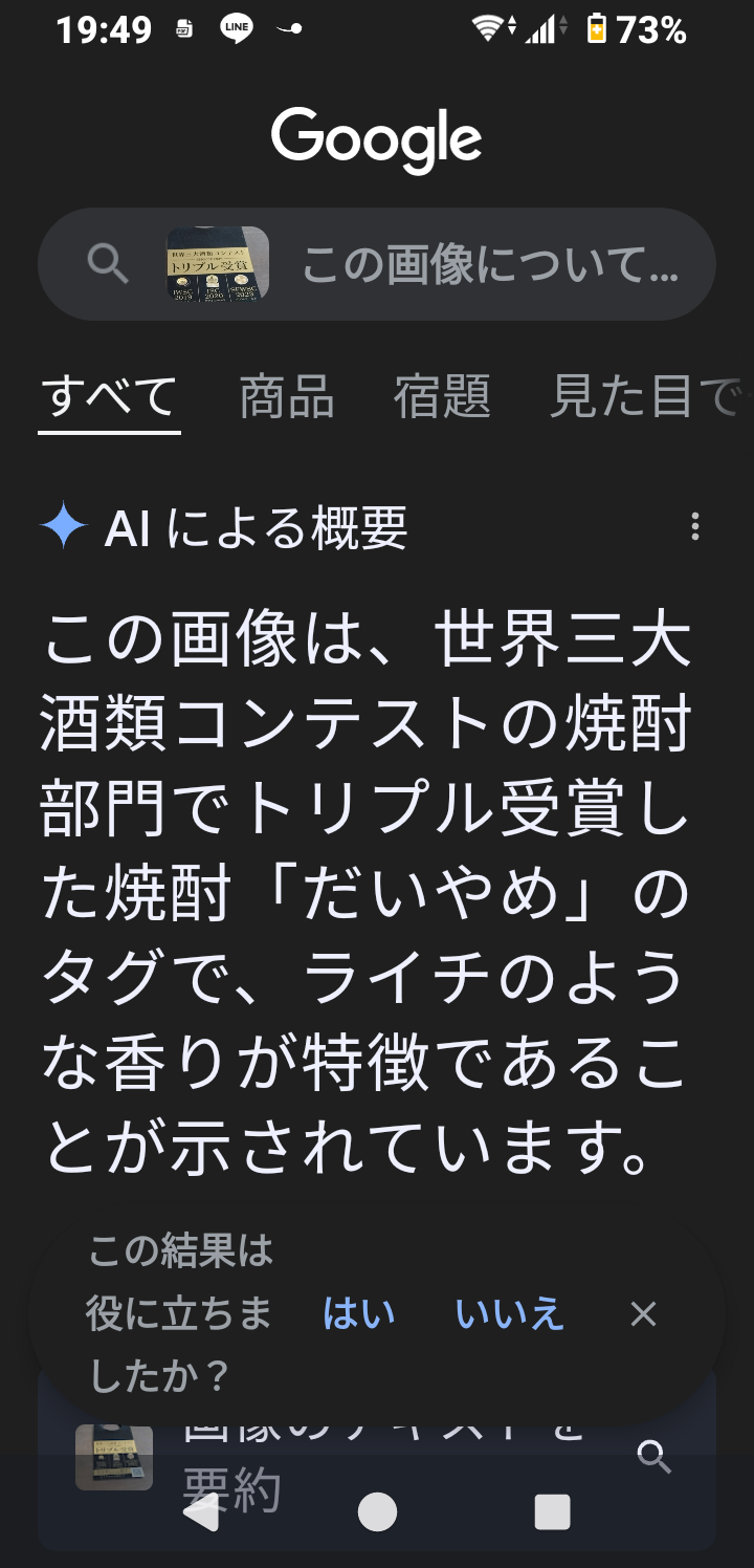 Google さんの「AI」講釈通りライチの香りがするすっきり焼酎