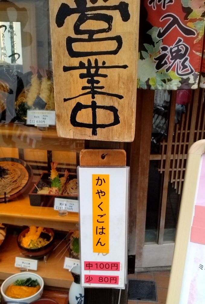 こちらおお店のかやくごはんは、元々うどんやそば等とのオプションメニュー、単品メニューではございません