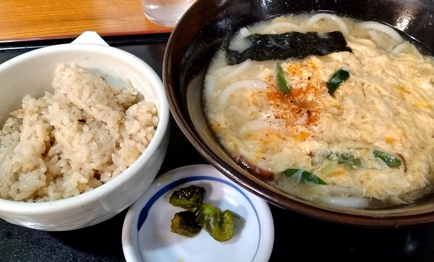出汁 + おいこんぶのこぶうどんとのセットがいつもの定石ですが、この日は卵のとじうどん