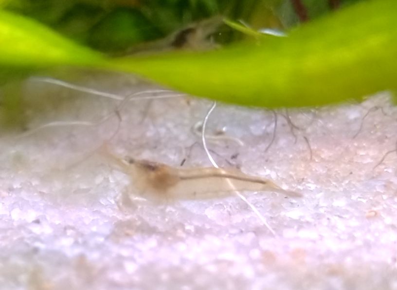 今朝サッパリ水槽の底砂に5mmほどの赤ちゃんヤマトヌマエビ発見