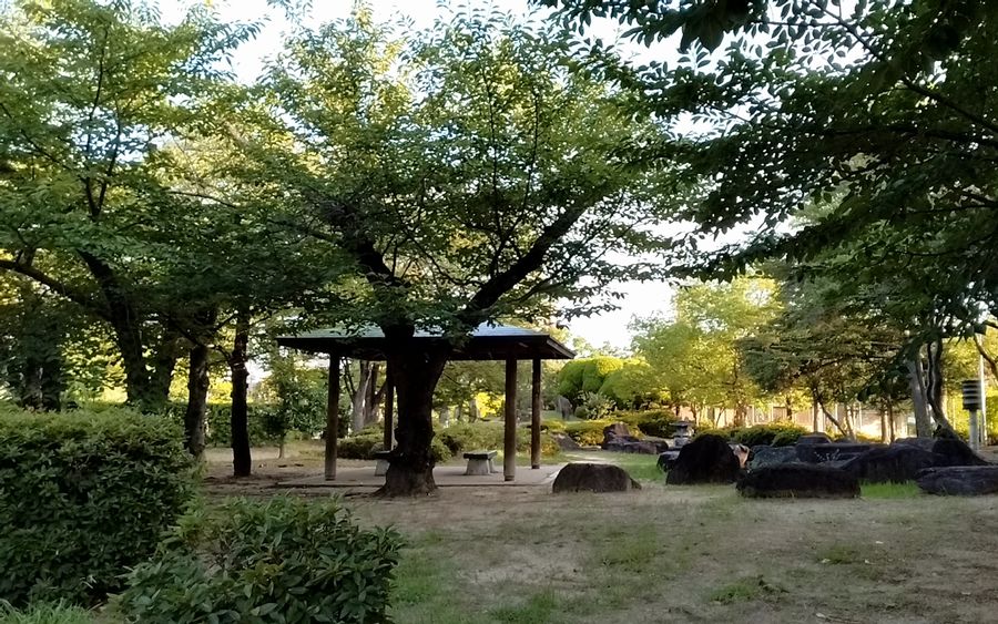 市役所前の公園抜けて旧市民会館の跡地の公園