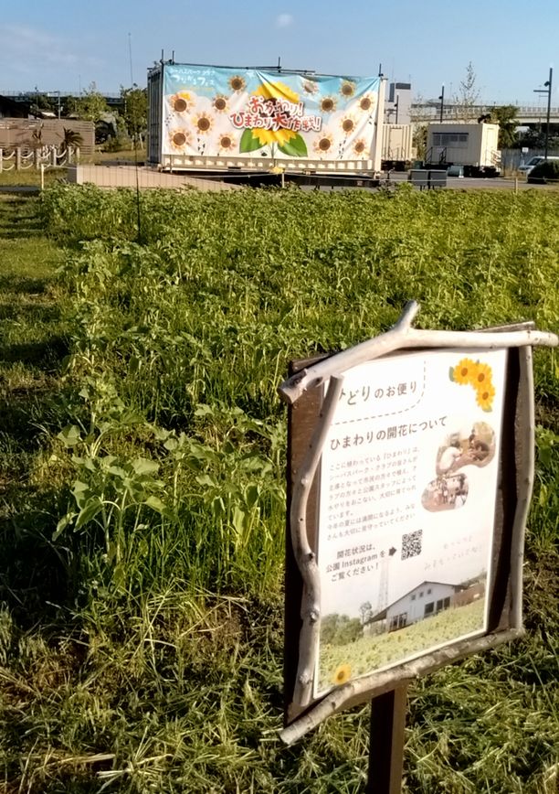 夏を目指したひまわり畑は梅雨明けが早すぎたのかまだまだ背丈は足りませんが順調に生育中