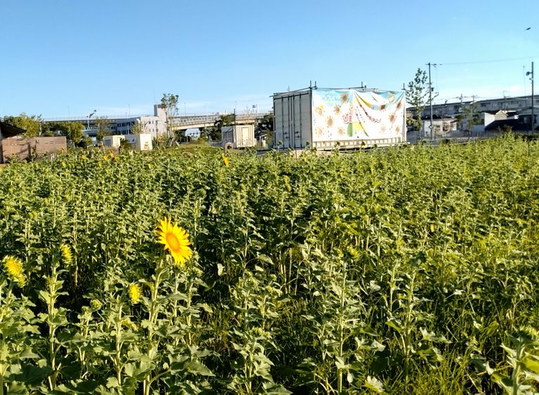 そんな中お悲惨カンカン照りの下で、一昨日までは咲いてなかったのに、おませなヒマワリ数輪咲き出しておりました