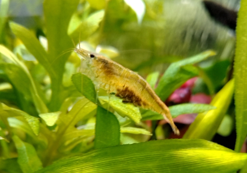 先日水槽の中におられるエビ族のママのご懐妊を発見