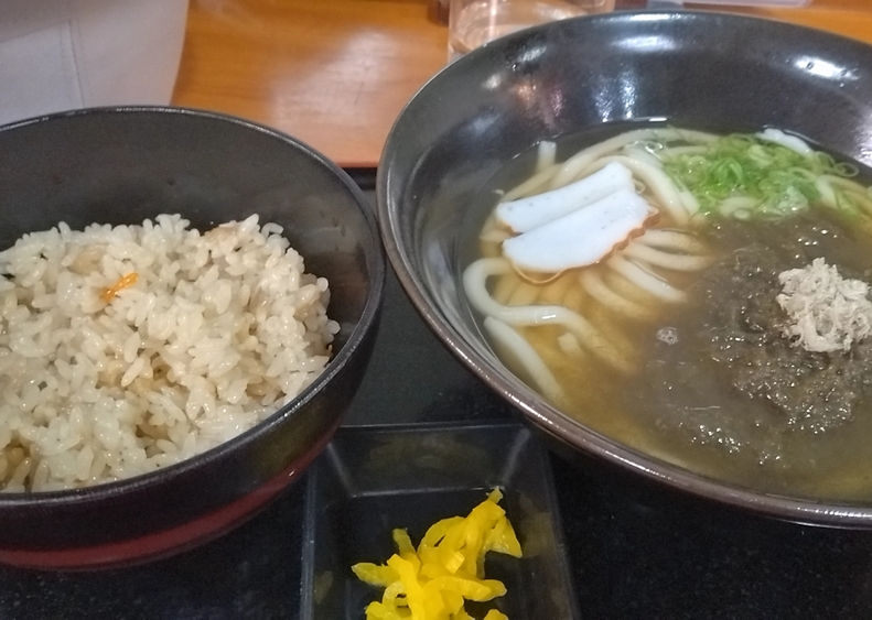 ◆ランチ: かやくご飯 + とろろ昆布うどん
