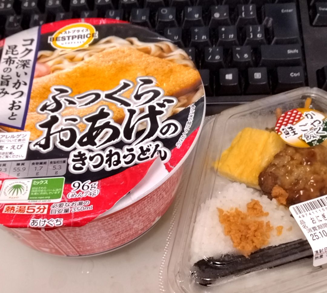 ◆ランチ:お握り + きつねカップ