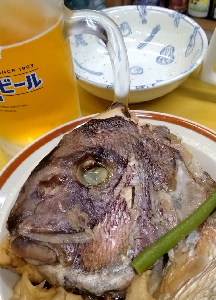私も名物鯛の兜煮とドレスコードの日本酒も頂き、タイの鯛とも会えました
