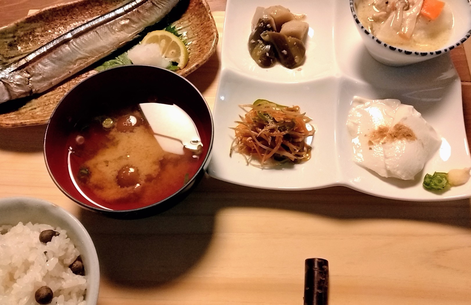 この日メインはサンマ、むかごご飯に数ある副菜
