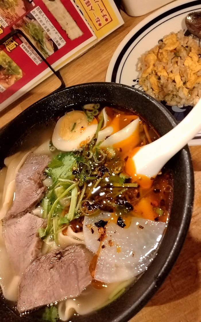 ◆ランチ: 平麺牛肉麺 + ミニチャーハン定食