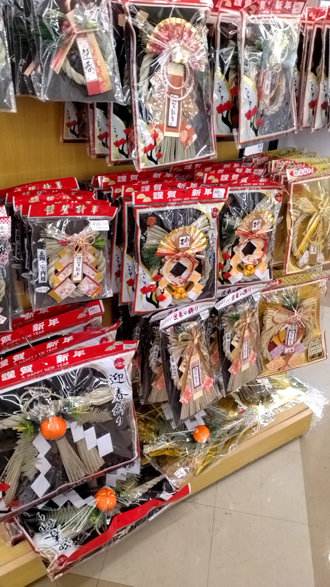 夕方の肴探しのお散歩で、正月飾りが出てました