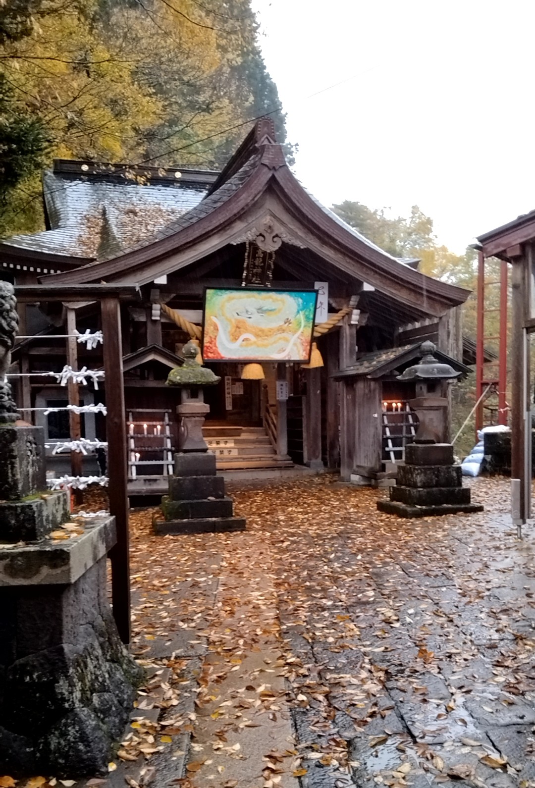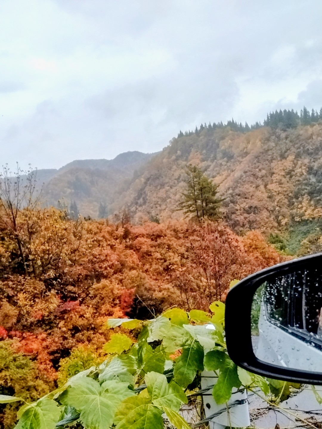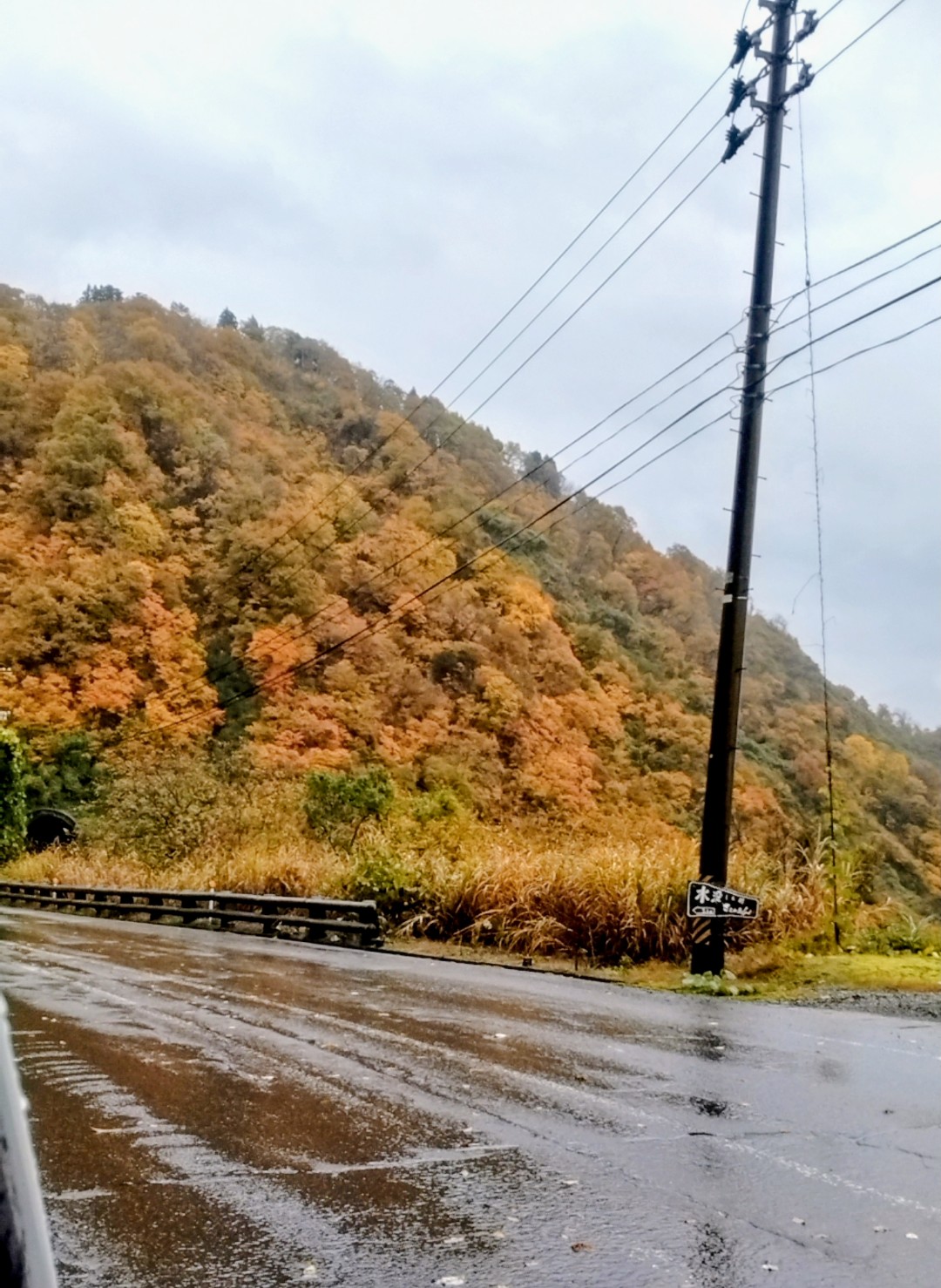 天気は生憎の雨でしたが、長岡市蓬平町にある高龍神社からお米聖地魚沼市にある西福寺に向かうまで、山古志あたりの山間ドライブの紅葉がお見事