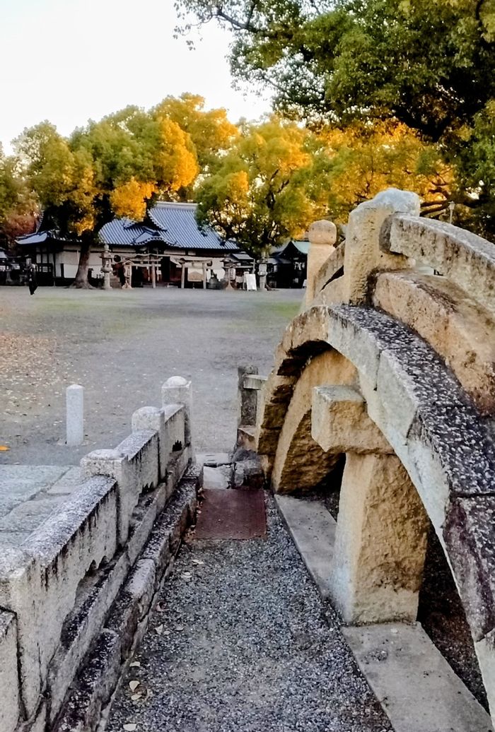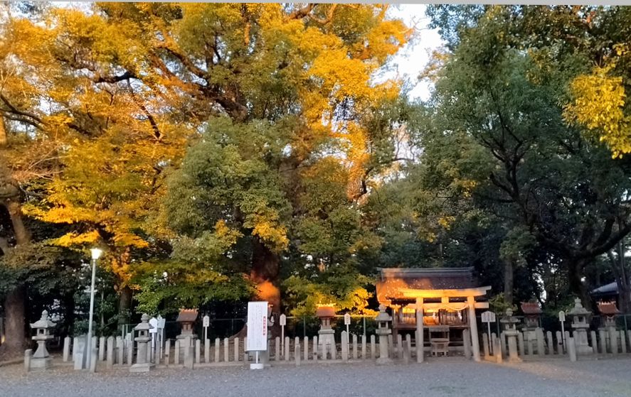 期待通り神社の鳥居から、日の出に生える終わりに近い秋の色を見ることできました